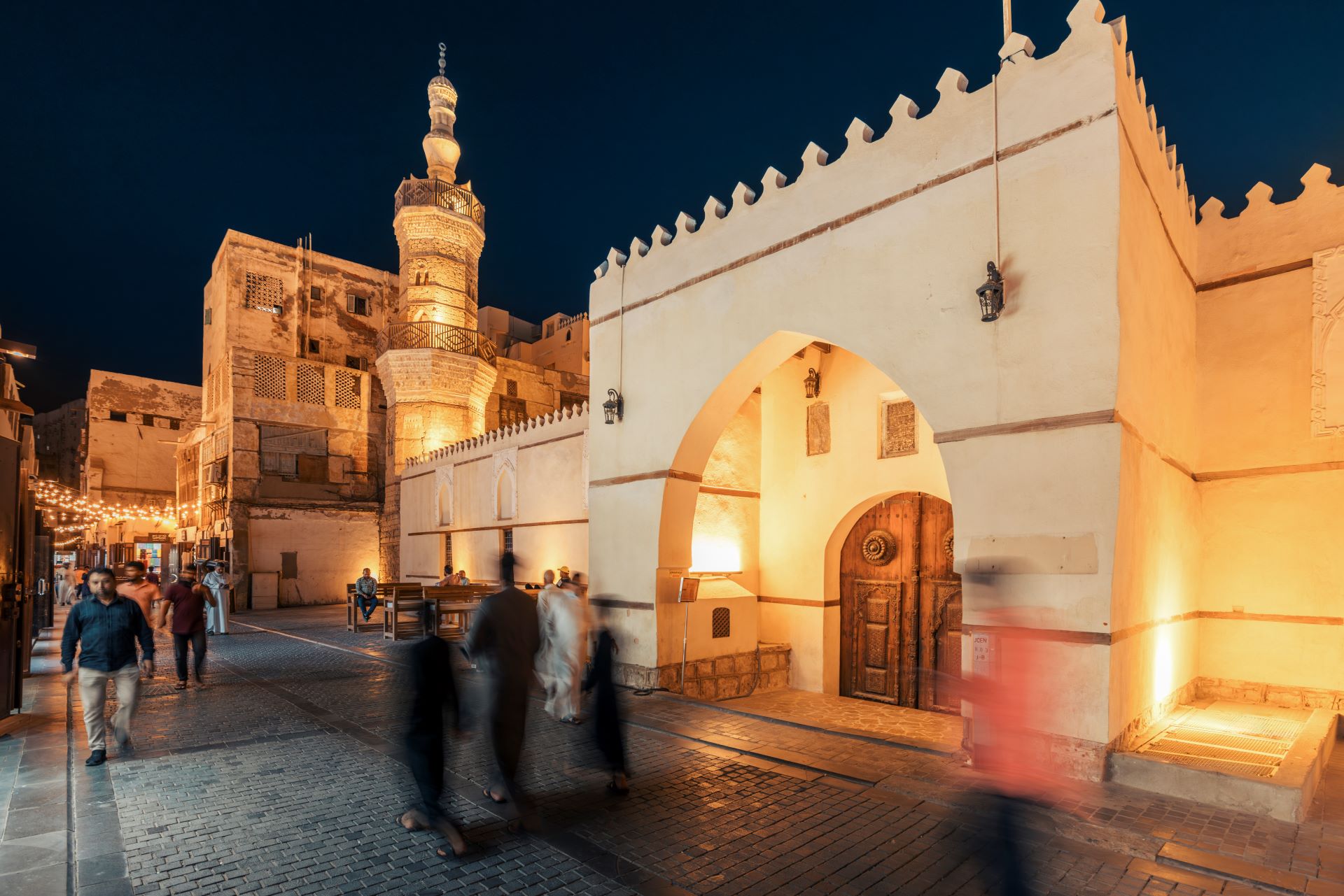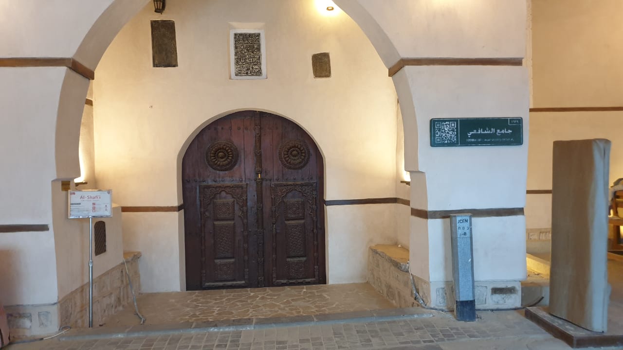 Al-Shafi’i Mosque, located in the Harat Al-Mazloom neighborhood in Historic Jeddah, Kingdom of Saudi Arabia, is unique in its architectural design. Its construction dates back to the era of Caliph Umar ibn Al-Khattab (may Allah be pleased with him). It is said that its minaret was built in the 7th century AH (13th century AD).